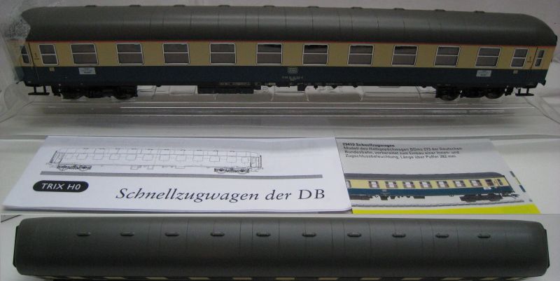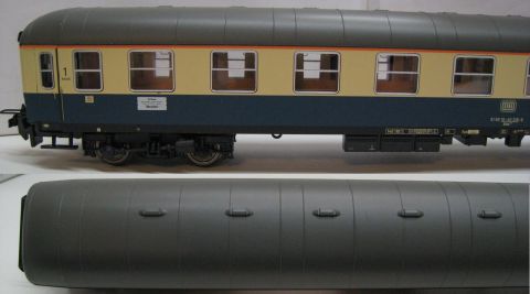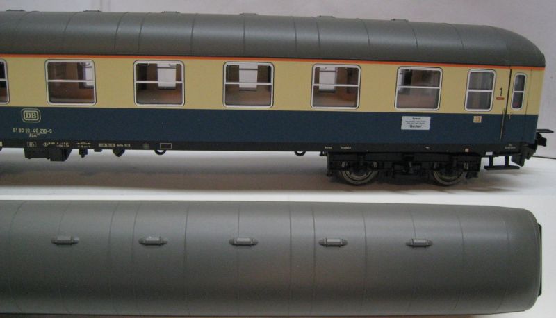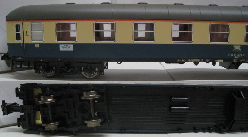 TI/TE 23415 1. Kl Abteilwagen Aüm 203 der DB. Ep IV, (mdm18) 10 Abteile 1. Klasse. Bauart UIC-x. Mit Trix Express Achsen und Kupplungen umgespurt, TOP/OV.