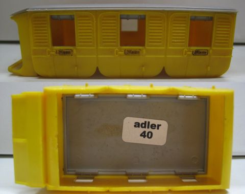 Wagengehäuse gelb mit Bremserbock mit Dach (40)