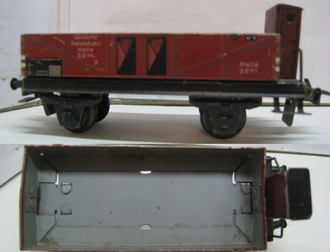 Trix Express 20/71 Niederbordwagen Typ "HALLE" m Brh der DR (mps8) mit Gebrauchs Spuren, siehe Bilder, o OV.