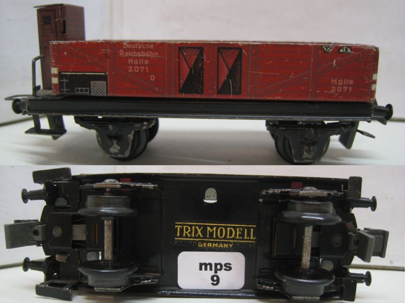 Trix Express 20/71 Niederbordwagen Typ "HALLE" m Brh der DR (mps9) mit Gebrauchs Spuren, siehe Bilder, o OV.