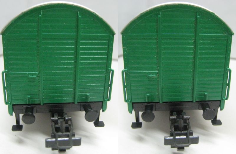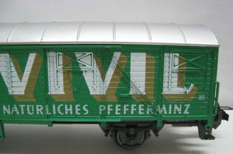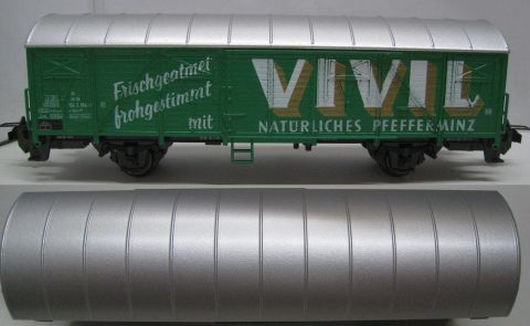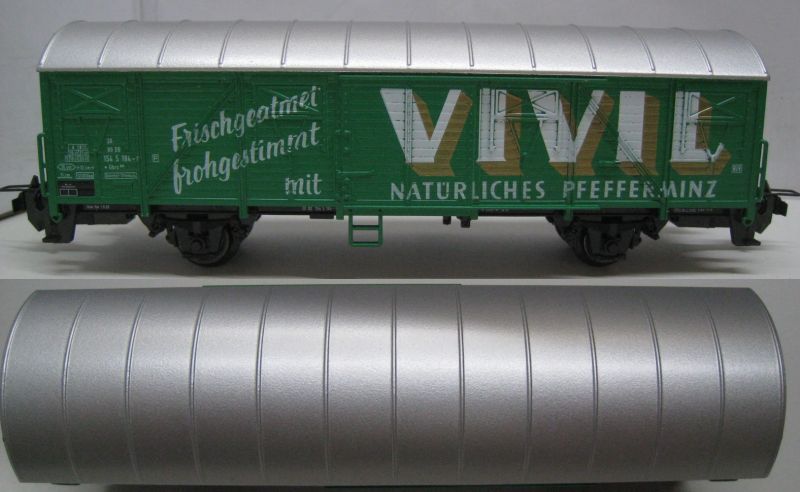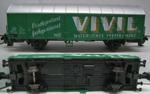 TI/TE 23885 ged Güterwagen grün der DB "VIVIL" (23-47) Trix Express Achsen und Kupplungen, in der TI Original Box.