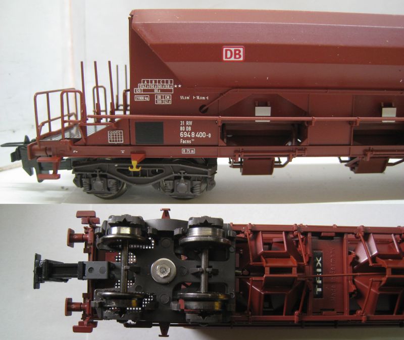TI/TE 23977 Selbstentladewagen Typ Facns133 der DB 694 8 400-0 (21-44) optisch perfekt, aber! Beide Drehgestelle wurden neu befestigt, auf der hinteren Seite fehlt die Lochblechabdeckung, sonst sehr schön in OV