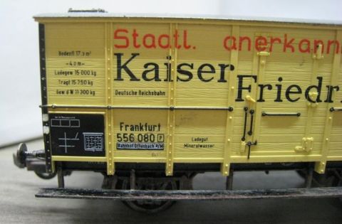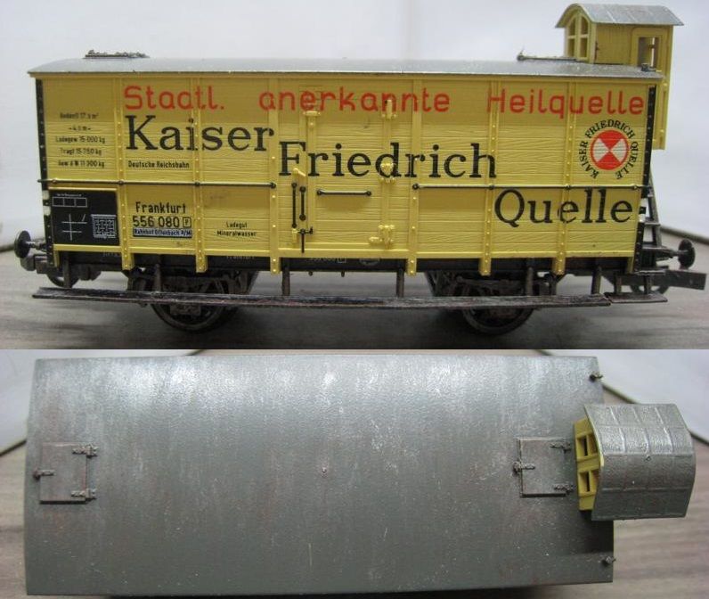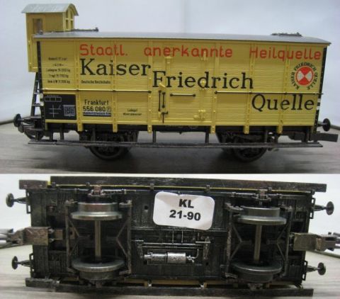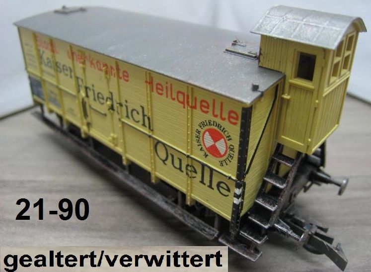 Trix Express aus 33830 "Kaiser Friedrich Quelle" der DR (21-90) der Wagen wurde meisterlich farblich behandelt (gealtert/verwittert) sehr realistisch, kommt mit den Abgebildeten Roco Kurzkupplungen im NEM Schacht, also problemlos gegen andere Kupplungstypen austauschbar, sehr schön Erhalten ohne OV.