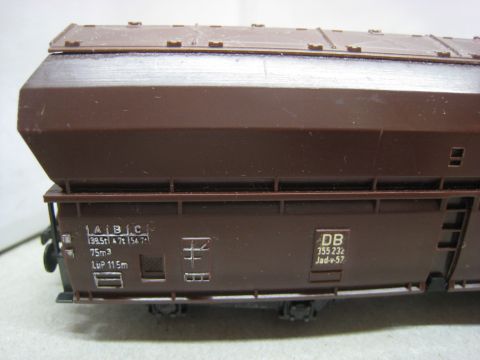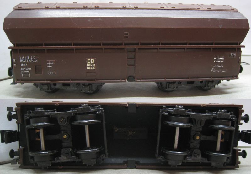 Trix Express 483 Schüttgutwagen für feine Güter geschlossen (us5117), frühere Version mit mehrteilig verschraubten Drehgestellen, sehr schön Erhalten, im Original Laschen Karton.