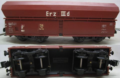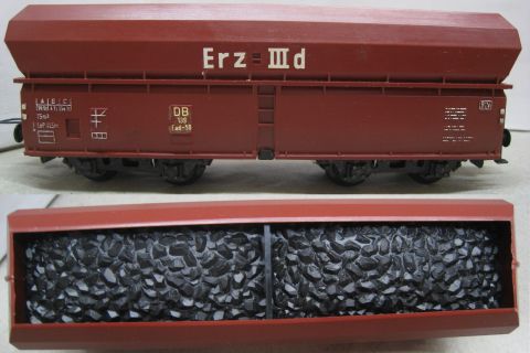 Trix Express 486 3486 Schüttgutwagen Erz IIId mit Kohle Einsatz (kdsus5109) "Erz IIId" aufgedruckt, mehrteilige verschraubte Drehgestelle sehr schön Erhalten im Original Laschen Karton.