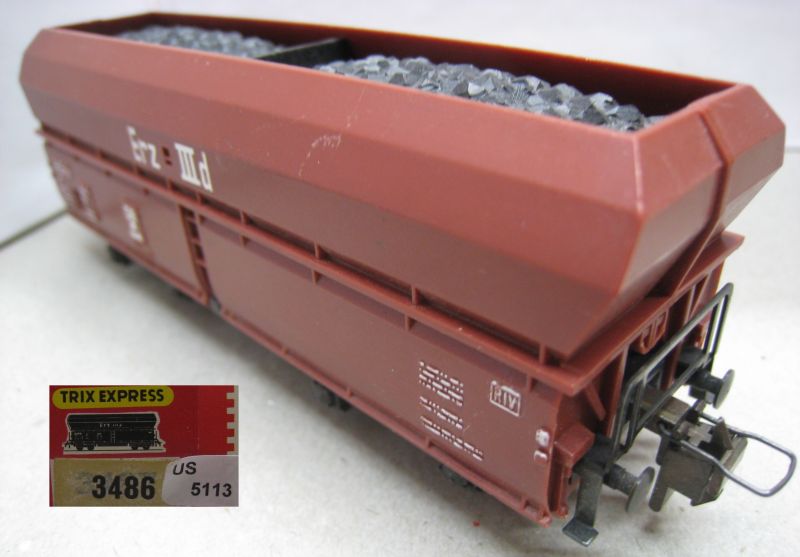 Trix Express 486 3486 Schüttgutwagen Erz IIId mit Kohle Einsatz (us5113)
