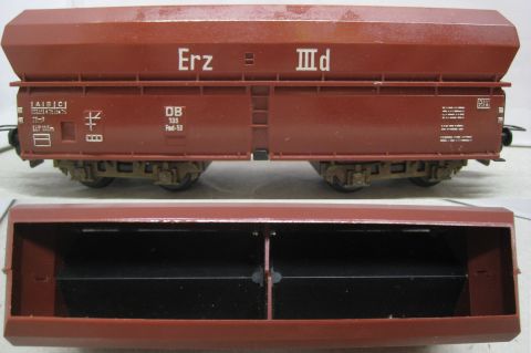Trix Express 3487 Schüttgutwagen Erz IIId (sww101) seltene Version, "Erz IIId" mit großem Abstand, weiß aufgedruckt, Gattungszeichen aufgedruckt, brünierte Fahrgestelle, sehr schön Erhalten o. OV