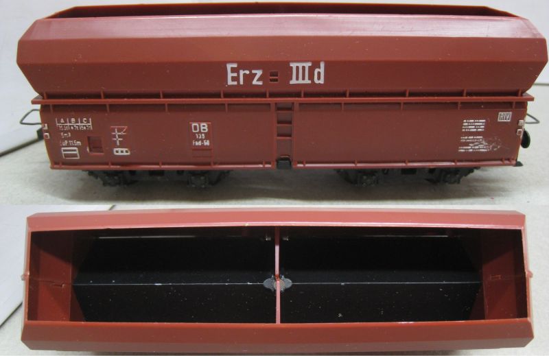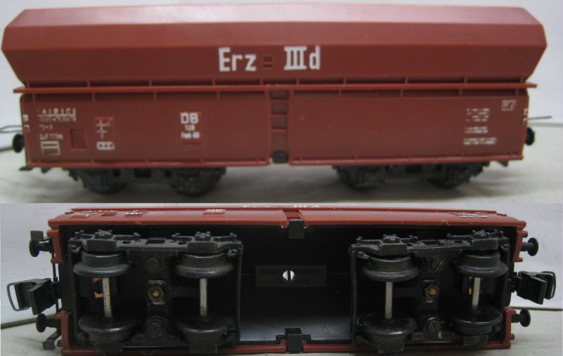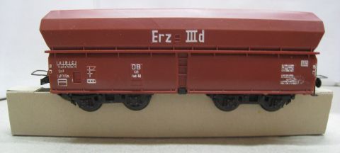 Trix Express 487 3487 Schüttgutwagen Erz IIId (us595) "Erz IIId" weiß aufgedruckt, mehrteilige verschraubte Drehgestelle sehr schön Erhalten im Original Laschen Karton, mit Papp-Einsatz!