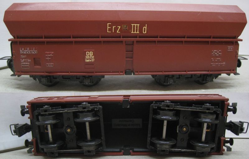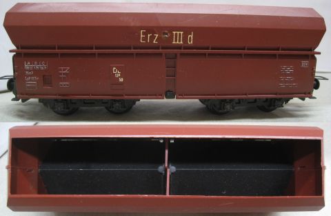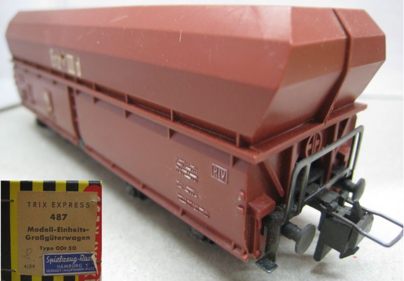 Trix Express 487 Schüttgutwagen Erz IIId (rasch) selten mit schmaler Beschriftung im Original Karton.