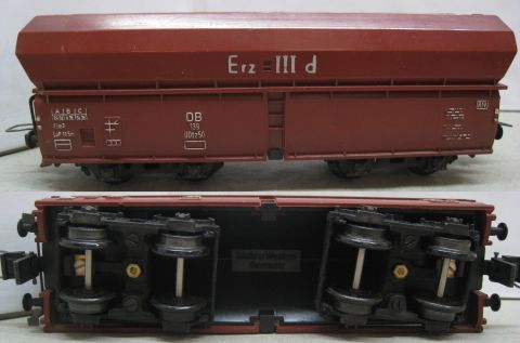 Trix Express 487 Schüttgutwagen "Erz IIId" (us593) sehr seltene erste Version "Erz IIId" silbern aufgedruckt dazu mehrteilige, verschraubte Drehgestelle, sehr schön im Original Laschen Karton.