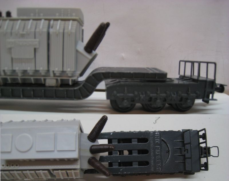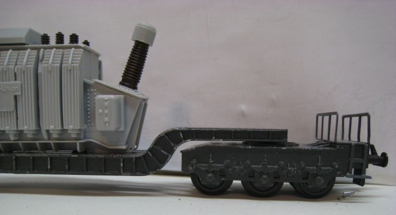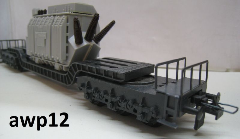 Trix Express 20/121T, 497, 3497 Trafotransport (awp12) letzte Version, jetzt beladen mit einem Trafo der "TRAFO-UNION", rundum sehr schön Erhalten. o OV