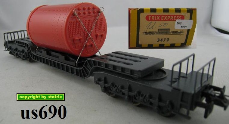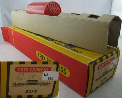 Trix Express 3479 Schwertransport mit rotem Kessel (us690), sehr selten in dieser neuwertigen Originalerhaltung, im rot/gelben Laschenkarton, auf Metallachsen umgerüstet, siehe Bilder.