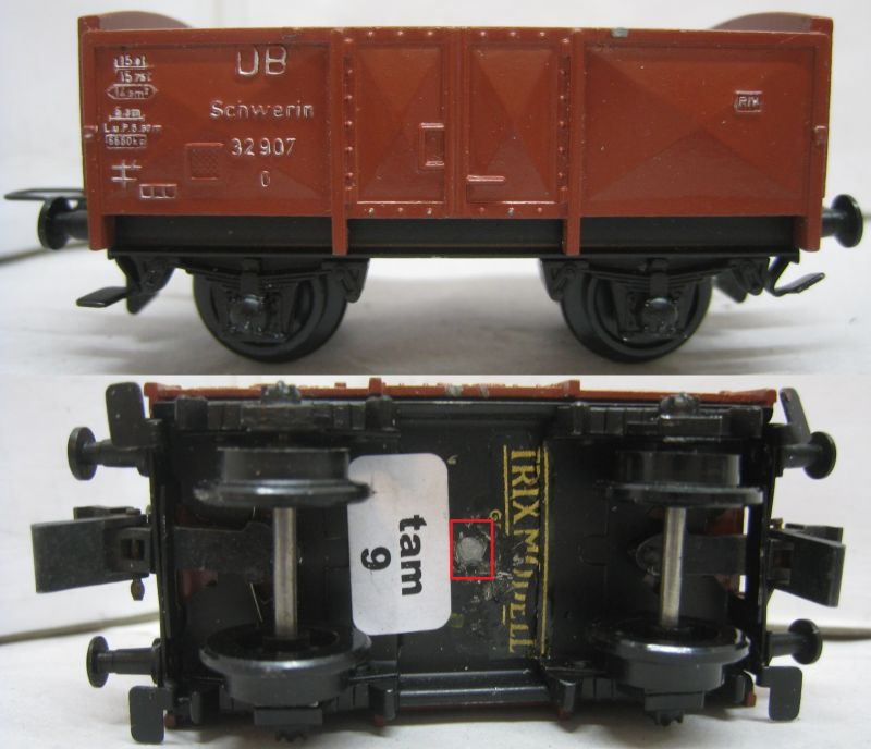 Trix Express 20/86, 412 Hochbordwagen "Schwerin" (tam9) schön Erhalten, aber der Aufbau wurde mal gelöst, Kupplungs wechsel? o OV