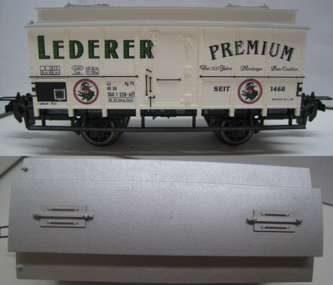 Trix Express 33504 Bierwagen Lederer Premium der DB (sws64) seltene letzte Version mit KKK und NEM Schacht, sehr gut leider ohne OV