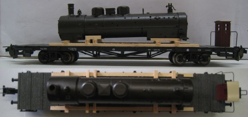 TI/TE 24314 preussischer Plattformwagen mit Brh (15-86) beladen mit einem Lokomotivkessel zur preußischen P8 aus Metall. TOP/OV