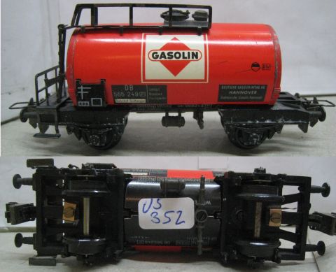 Trix Express 3430 Tankwagen "GASOLIN" 2-achsig (us352) Rechteck Signet, komplett und rundum sehr schön Erhalten o. OV.