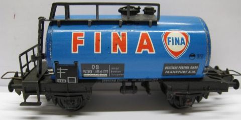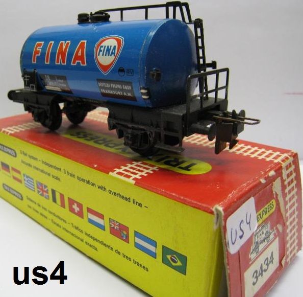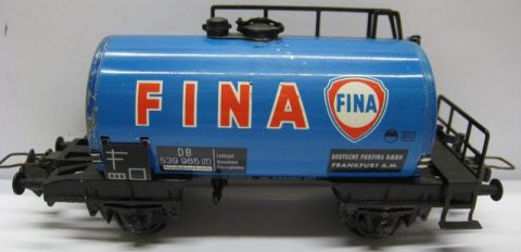 Trix Express 3434 FINA Tankwagen (us4) 2-achsig, kleine Gebrauchsspuren, beide Laternenhalter vorhanden, schön Erhalten, im Originalkarton.