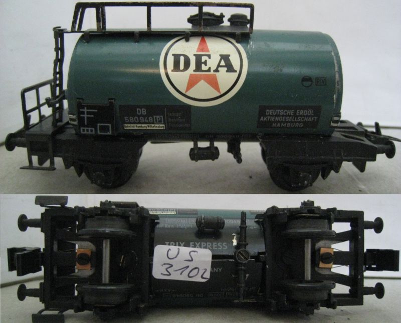 Trix Express 3462 Tankwagen "DEA" 2-achsig (us3102), auf einer Seite der rote Teil im Signet ein wenig verblichen