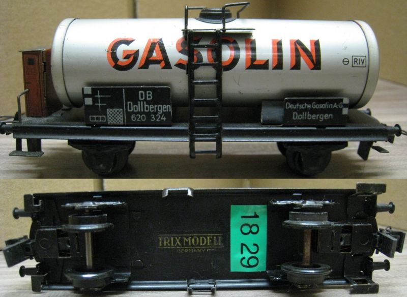 Trix 20/78G Tankwagen "GASOLIN" mit Bremserhaus (18-29) chromlithographiert, 1950 bis 1959, nur minimale Gebrauchsspuren, sehr schön Erhalten, siehe Bilder.