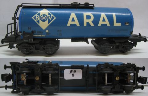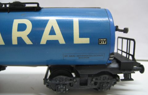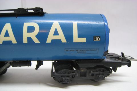 Trix Express 20/92A 494 3494"BV ARAL" (jha9) blau 4-achsiger Einheits-Leichtkesselwagen (ELK) frühe Version, sehr schön Erhalten mit geschraubten Drehgestellen o.OV