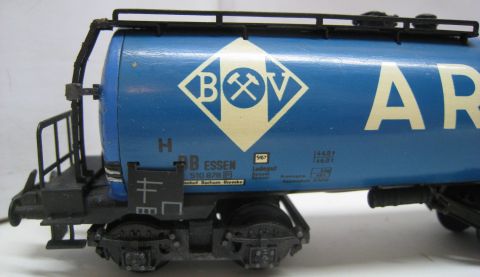 Trix Express 20/92A 494 3494"BV ARAL" (jha9) blau 4-achsiger Leichtkesselwagen (ELK) frühe Version o.OV