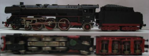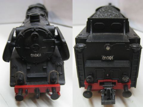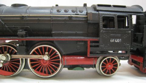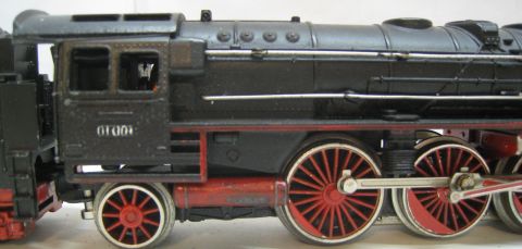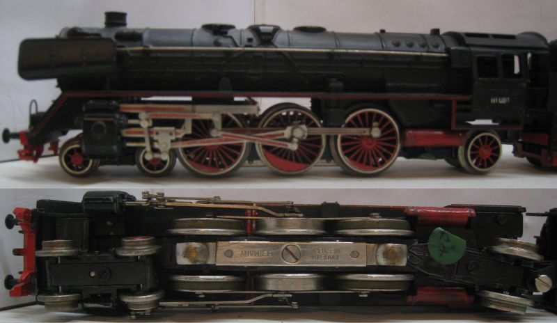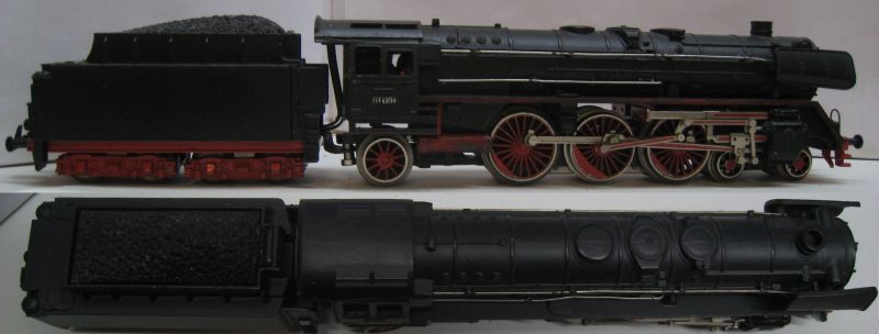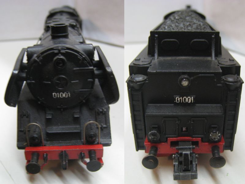 Trix Express 763 BR 01 001 1. Version (ts7) Tender Gehäuse Metall, Stromabnahme am Tender über Drehgestelle, ein vorderer Tritt verformt, sonst rundum schön Erhalten. Ohne OV