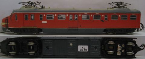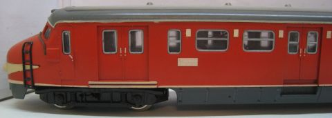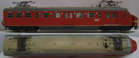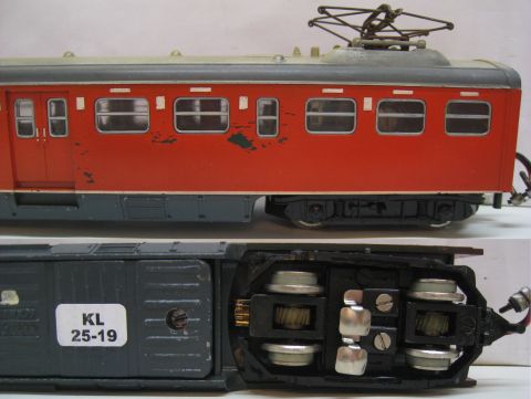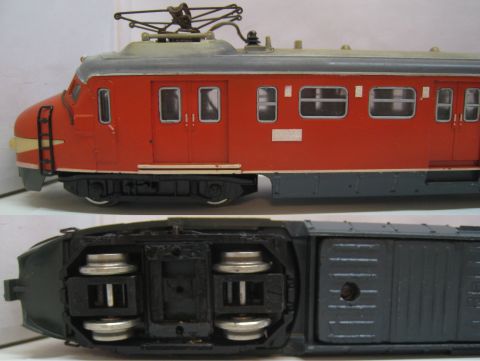 Der orangerote ELD in dieser Erhaltung zu finden ist schwer, da Trix seinerzeit einfach die grünen Gehäuse orangerot überspritzt hatte, ohne den Untergrund vorzubereiten. Was dazu führt das die Farbe nur sehr wenig Haftung hat und bei der geringsten mechanischen Belastung abplatzt.