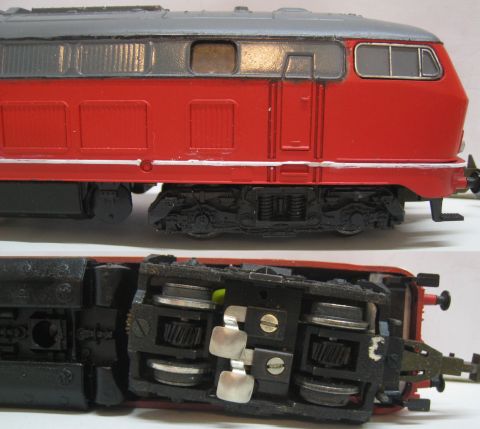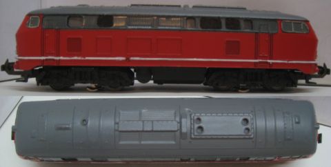 Trix Express ehemals 2259 um lackiert, jetzt neurot mit brünierten Radsätzen, vorbildgerechtem LED Lichtwechsel 3 x weiß/2x rot, Abziehbilder zur Beschriftung liegen bei, schön Erhalten ohne OV.