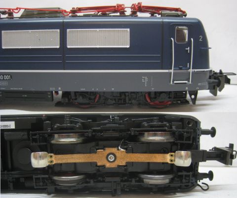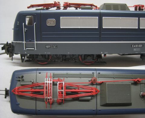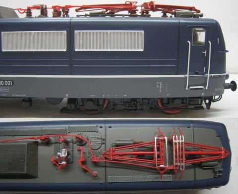 - Metallstromabnehmer mit originalgetreuen, unterschiedlichen Schleifstücken ohne sichtbare Verschraubungen
