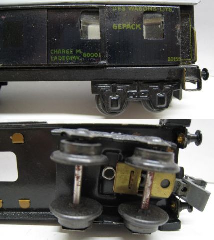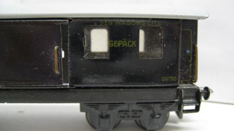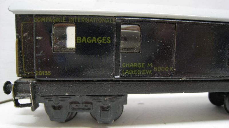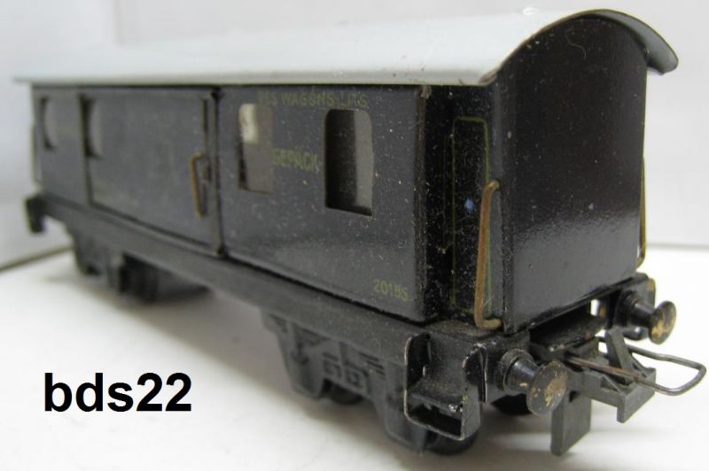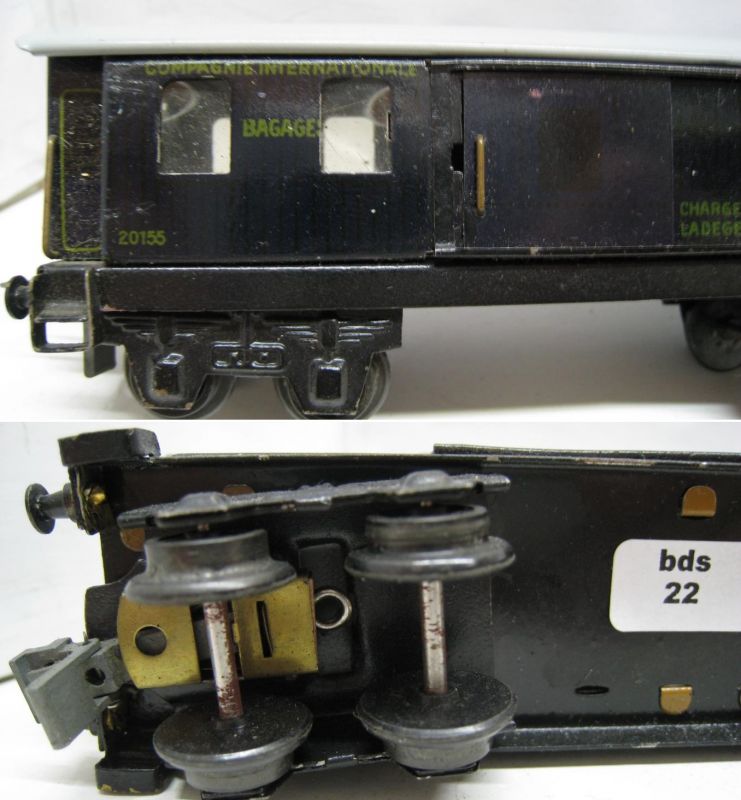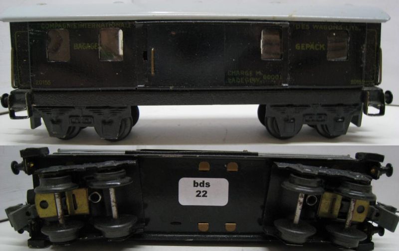 Trix Express 20/155 Wagon Lits Packwagen kurze Serie blau (bds22), erste Nachkriegs Serie, Geländer aus Messingdraht, Kupplungs Abdeckung Messing Blech, Kupplung grau, so nur 1948, sehr schön Erhalten.