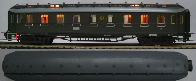 Trix Express 3371 D-Zug-Personenwagen B4ü Pr 11a (dr79) mit Innenebeleuchtung, bis auf zwei abgebrochne Treppen rundum sehr schön Erhalten, in OV ohne Label