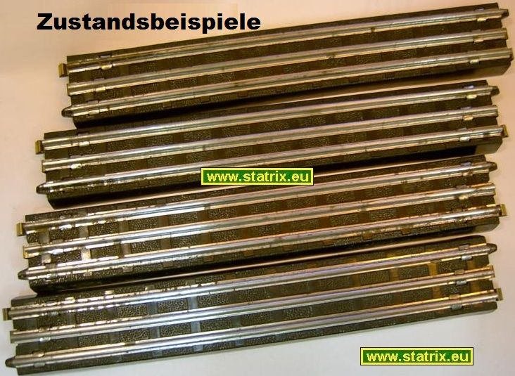 Trix Expresss 20/1 1/1 Bakelitgleis gerade 2. Wahl, mit mehr oder weniger Rostbefall, grob gereinigt, technisch ohne Abbrüche oder Fehler, sofort Einsatzbereit.