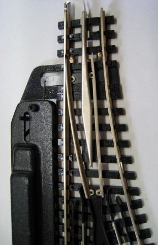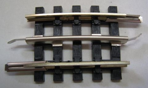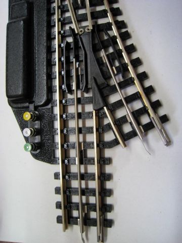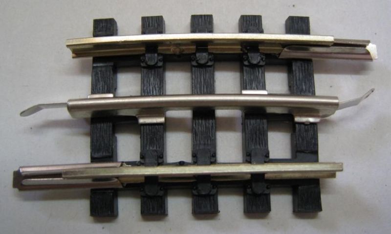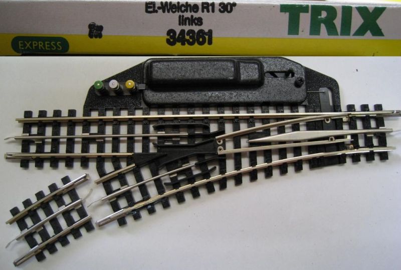Trix Express 34361 elektrische Weiche R1 30° links mit Ausgleichs-Stück, letzte Serie, gelblicher Schienenstrang, blanker Mittelleiter Neu/OV aus Laden Fund.