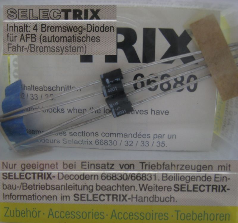 Trx 66880 4 Bremswegdioden für AFB (automatisches Fahr-/Bremssystem) (Bei Betrieb mit Selectrix-Fahrzeug-Decodern 66832/66833, 66836).