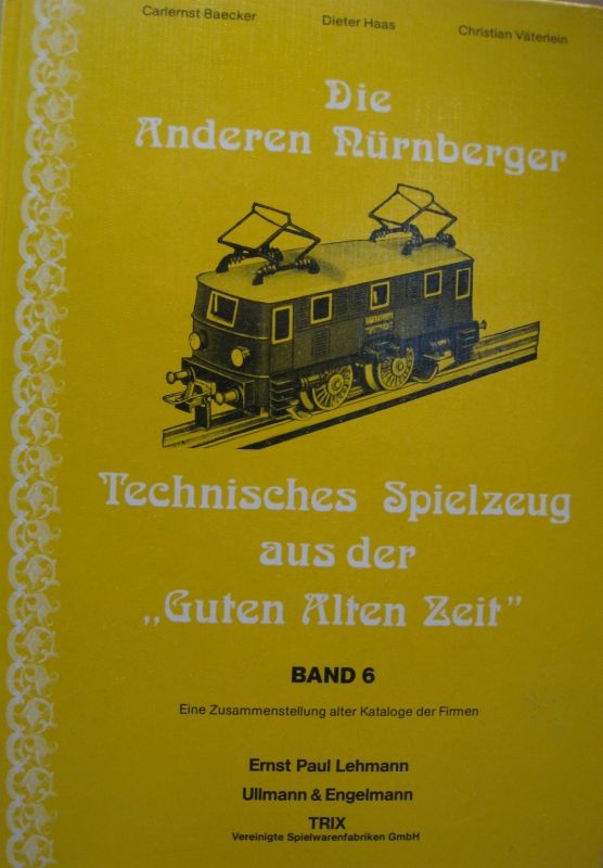 Die Anderen Nürnberger Band 6 – Technisches Spielzeug aus der Guten Alten ZeitZusammenstellung alter Kataloge der Firmen E.P. Lehmann, Ullmann & Engelmann und Trix Gerade dieser Band ist für den Trix-Sammler überaus interessant. In diesem Buch werden die äußerst seltenen Kataloge von 1935 bis 1955 abgebildet.