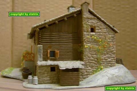 Berghaus aus dem Voralpenraum (15) Wirtschaftsteil-Stall, Schuppen oä als Naturstein-Anbau ausgeführt, ca Größe der Grundplatte 16x14cm , schön Erhalten, siehe Bilder.