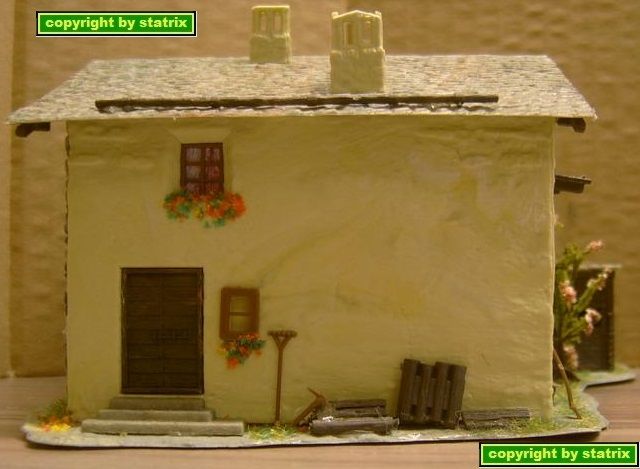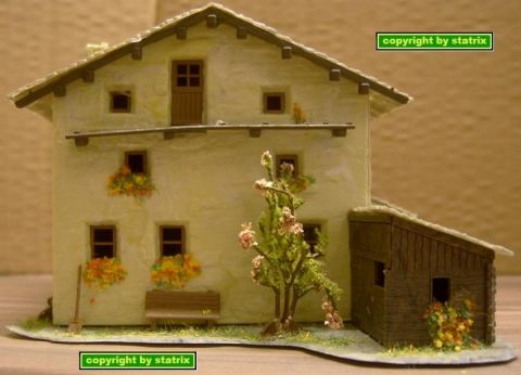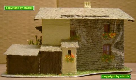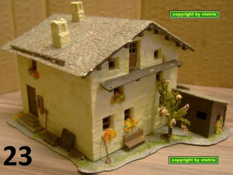 Schönes Bauenhaus mit teilweiser Natursteinoptik (23) und Schuppen, ca Größe der Grundplatte 16x13 cm, schön ausgestattet, am Balkon feht das Geländer, sonst schön Erhalten, siehe Bilder.